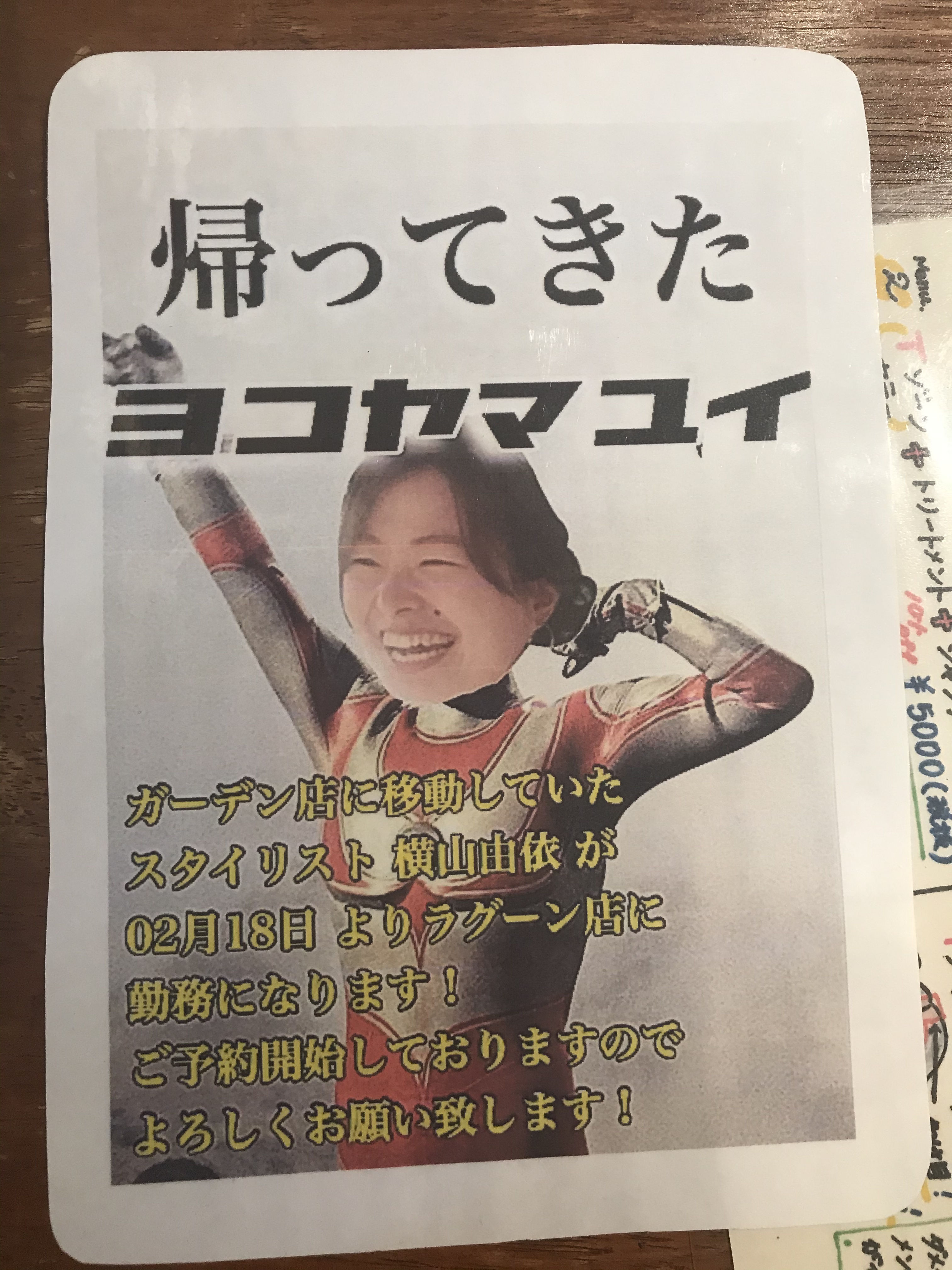 ガーデン店からラグーン店にスタイリスト 横山由依 が、02月18日より勤務になります。